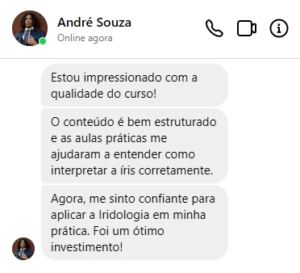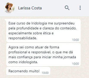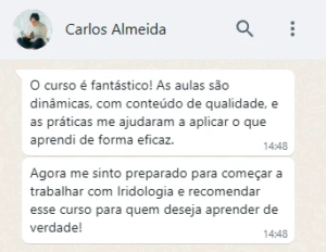 Quer ver o que outros alunos têm a dizer? Confira os depoimentos nas imagens abaixo e veja como o curso transformou suas vidas e carreiras. Essas histórias são a prova de que investir em conhecimento com a iridologia realmente vale a pena!