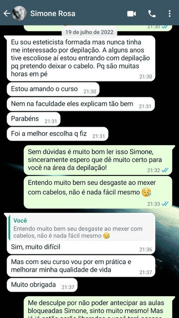 “O curso de depilação com cera me deu confiança para seguir minha paixão e construir uma carreira sólida. Estou ansiosa para começar essa nova jornada.”